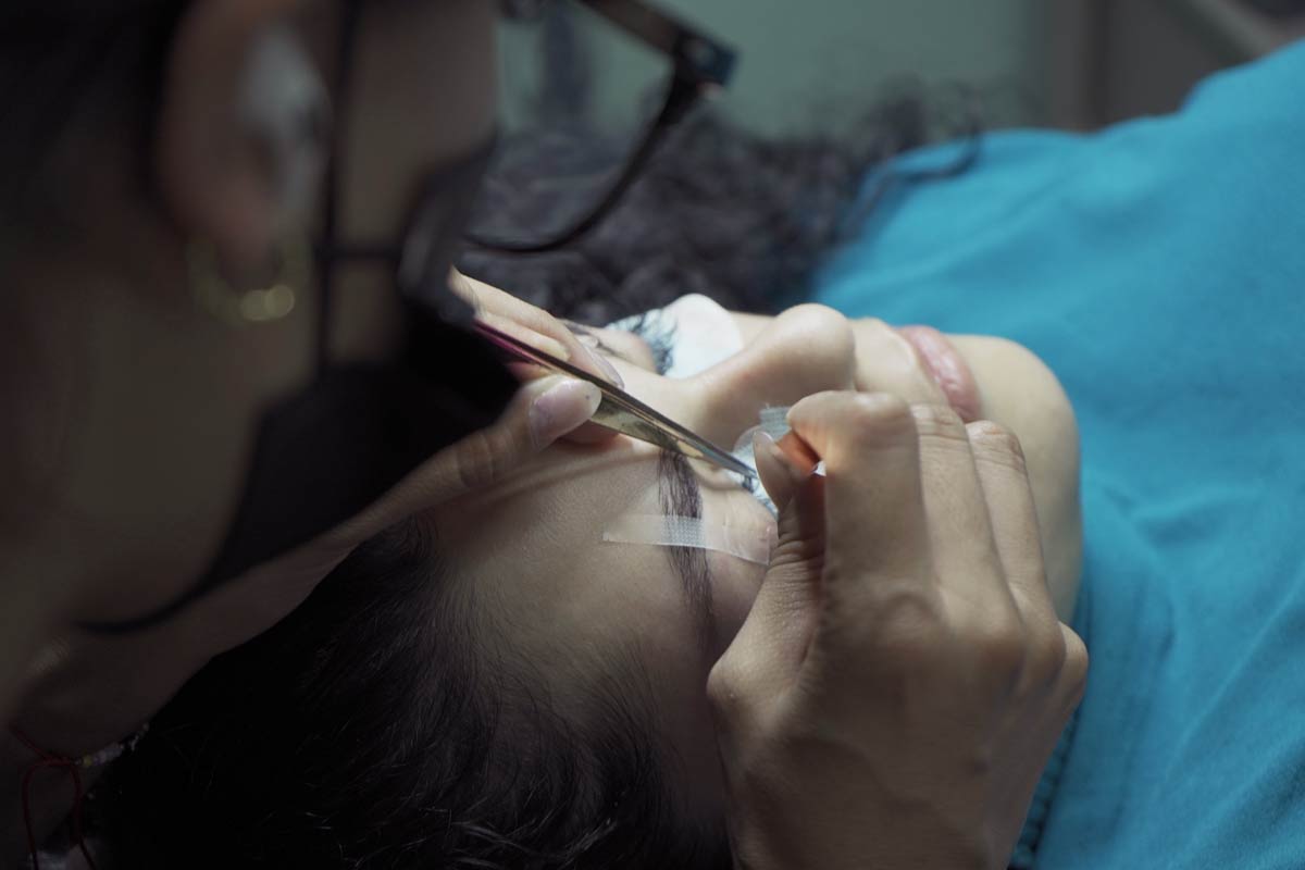 - Colocamos un parche en la abajo del lagrimal para proteger tus pestañas inferiores.